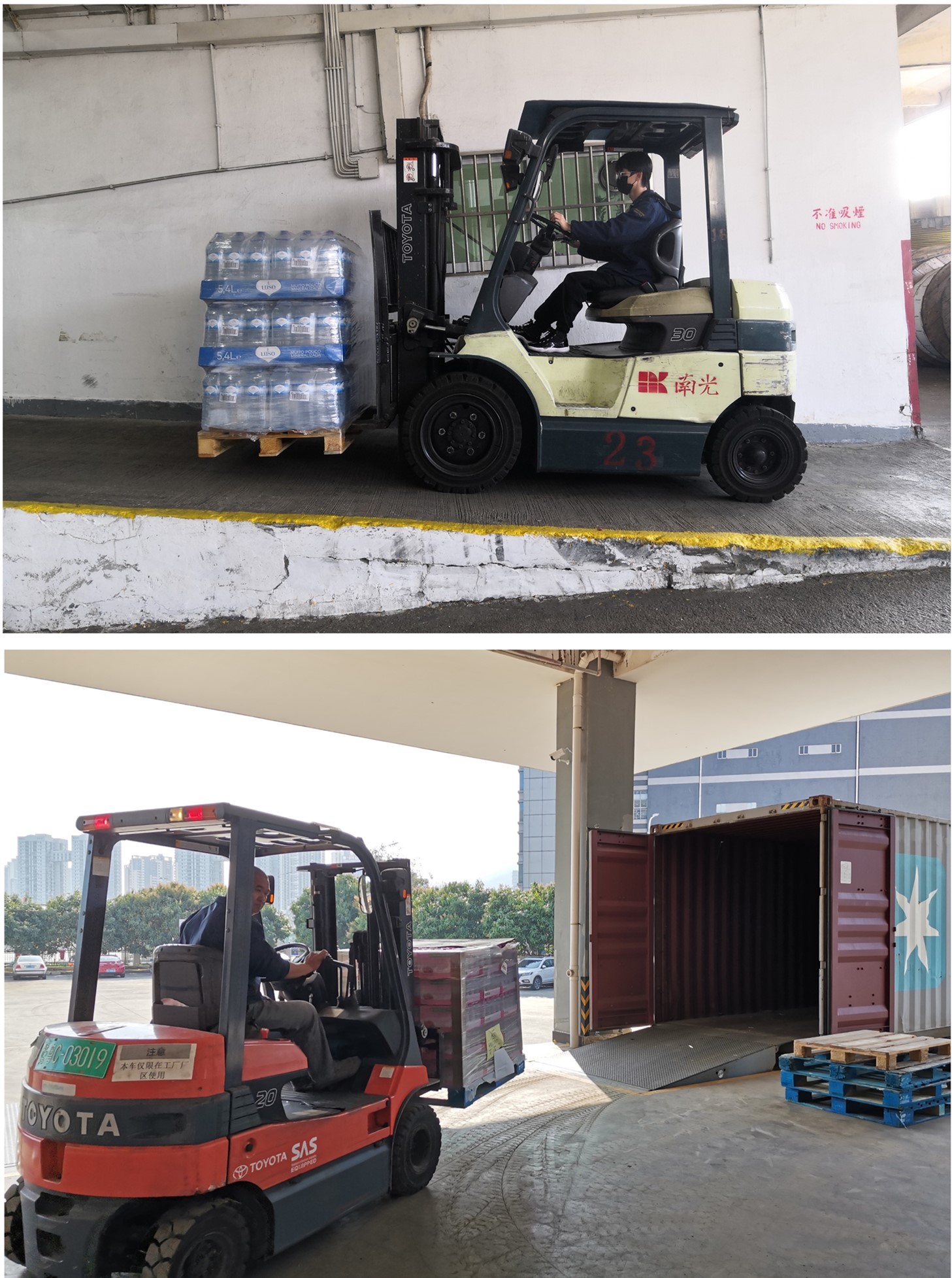 南光物流 新春新气象,南光仓再起航,南光物流下属仓码配送部及通宇公司同事高效有序为客户装卸货物,服务至上。 南光物流下属谷丰公司同事以饱满的精神状态重返工作岗位,在做好疫情防控的基础上,为冷冻食品进行包装。 南光物流下属南岐公司同事对工作现场实施全面消杀防疫工作,坚决守住安全底线。 新的征程已拉开帷幕,南光物流下属跨境运输部同事积极运输供澳日用品,服务澳门民生。 一年之计在于春,南光物流下属南光贸易红酒部和润莱同事将发扬“俯首甘为孺子牛”的精神,为客户提供更加专业的服务。
