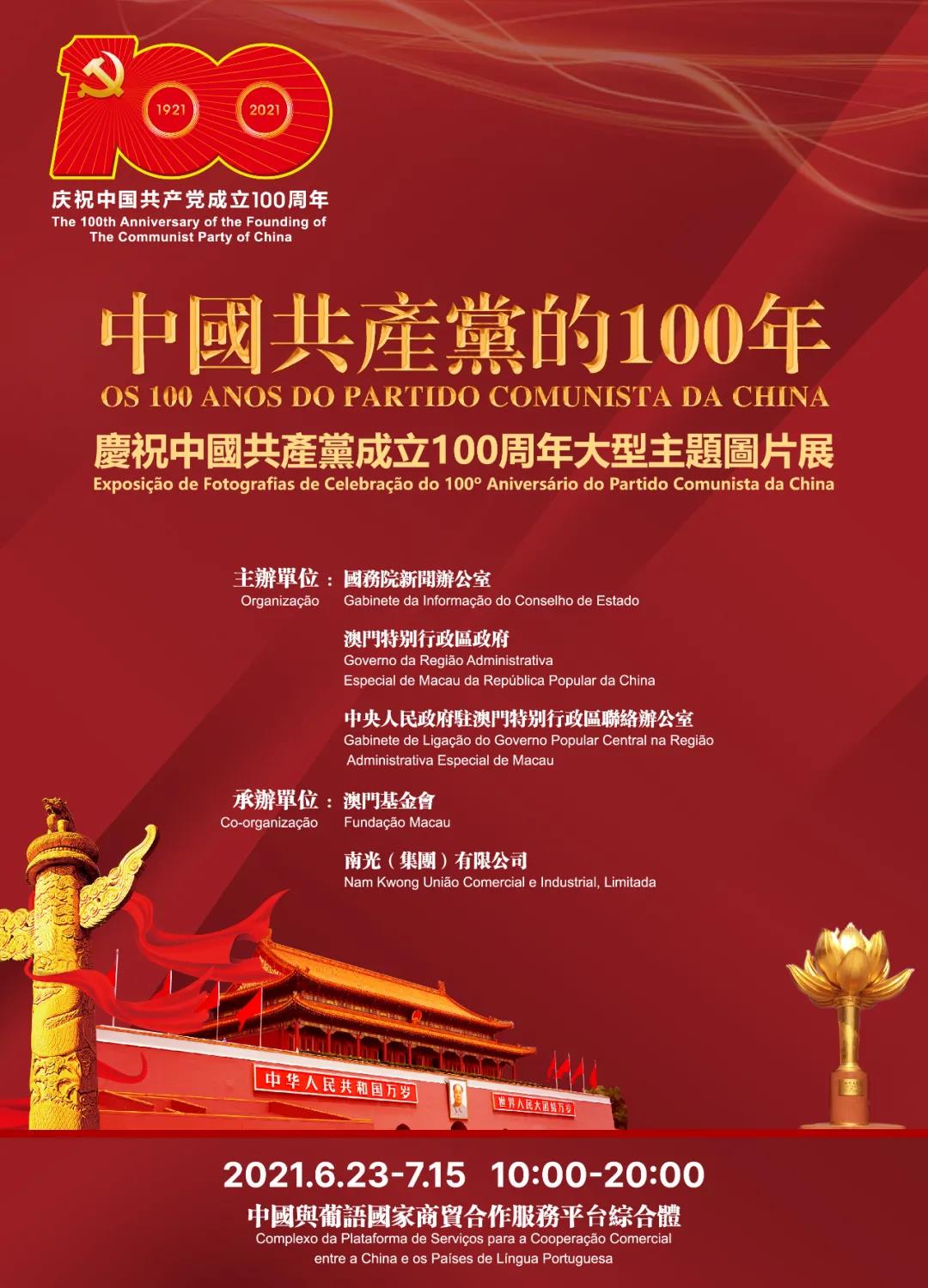 南光集团承办庆祝建党百年主题图片展 6月23日,“中国共产党的100年——庆祝中国共产党成立100周年大型主题图片展”在中国与葡语国家商贸合作服务平台综合体(澳门)会议厅揭幕。该展览由中华人民共和国国务院新闻办公室、澳门特别行政区政府、澳门中联办主办,南光集团与澳门基金会联合承办。 “中国共产党的100年——庆祝中国共产党成立100周年大型主题图片展”在澳门举办 2021年是中国共产党成立100周年,是国家实施“十四五”规划、开启全面建设社会主义现代化国家新征程的第一年,作为向党的生日献礼,南光集团联合承办“中国共产党的100年”大型主题图片展,通过这一生动、形象的形式,重温中国共产党百年奋斗的光辉历史,铭记中国共产党为国家、为人民、为民族、为世界作出的伟大贡献。更重要的是,让广大澳门居民尤其是青年一代,可以深入了解中国共产党的百年奋门历程,筑牢和巩固澳门“爱国爱澳”的主流价值观和良好社会政治基础,进一步增强对中国共产党的认同感,对伟大祖国的归属感以及作为中国人的自豪感。 一幅幅记录永恒瞬间的照片深深吸引参观者目光 此次展览精心设计了“建立中国共产党,夺取新民主主义革命伟大胜利”“成立中华人民共和国,进行社会主义革命和建设”“实行改革开放,开创和发展中国特色社会主义”“推进中国特色社会主义进入新时代,全面建成小康社会,开启全面建设社会主义现代化国家新征程”4个部分,通过298幅生动图片,全景展现在中国共产党领导下,久经磨难的中华民族实现从站起来、富起来到强起来的辉煌历程,让澳门居民更好地了解中国共产党的昨天、今天和明天,共享祖国繁荣富强的伟大荣光。