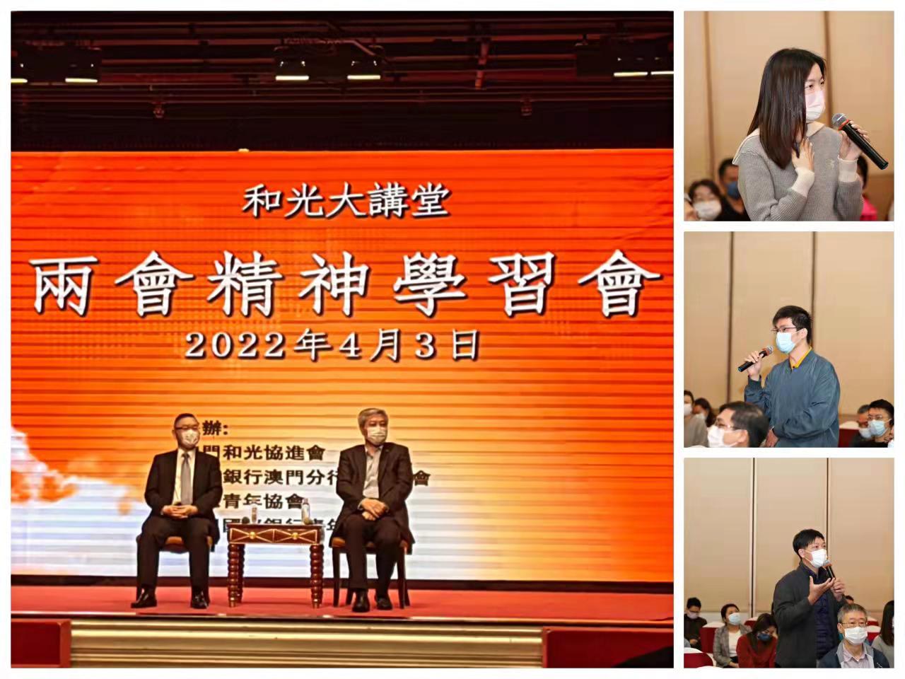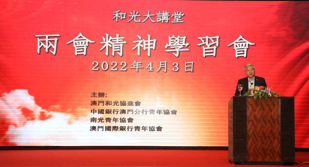 4月3日上午,全国政协委员、南光集团董事长傅建国在澳门万豪轩面向广大青年朋友多角度宣讲解读习近平主席重要讲话精神,交流分享今年全国“两会”精神,收到积极成效。活动由南光青年协会会同澳门和光协进会和有关青年社团联合举办,傅建国董事长受邀作为重要演讲嘉宾参加活动。 傅建国董事长通过对近几年包括2021年中外经济发展数据对比分析,以及对2022年疫情持续和国际形势复杂多变环境下我国经济工作布局安排的解读,深刻阐明了我国经济发展的韧性和潜力,指出“中国经济一定能顶住压力,必将行稳致远”,坚定了发展信心;从习近平主席亲自谋划部署推动我国全面建成小康社会,持续专注改善民生,今年“两会”也是乘势而上继续把民生改善作为核心议题,深入浅出解读习近平主席以人民为中心的发展思想,坚定了道路自信;从疫情大考下中外防疫理念、策略和成效各方面对比,直观展现了我国制度优势和治理优势,坚定了制度自信;从港澳经济发展的现实出发,深入解读习近平主席关于澳门经济多元发展的重要指示精神,让青年朋友们进一步深刻认识到澳门融入国家发展大局的重要性和紧迫性,坚定适度多元发展的决心;结合十九大及十九届历次全会精神,从我国百年奋斗历程和奋斗目标全局解读“加强中华儿女大团结”的重大意义,引导青年朋友们把握澳门的定位和使命,号召澳门广大青年主动做行政长官和特别行政区政府依法施政的坚定支持者、主动做澳门经济社会繁荣稳定和谐的重要推动者、主动做中华民族伟大复兴的积极参与者! 活动还邀请了澳区全国人大代表崔世平先生、中联办经济部助理张冠宇先生、澳门立法会张健中议员、颜奕恒议员、澳门行政委员会周永豪委员以及有关社团负责人和逾百名青年参加。现场交流氛围良好,还进行了积极互动。 |