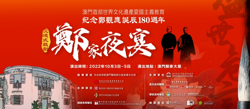 9月19日下午,澳门首个沉浸式戏剧《郑家夜宴》新闻发布会于澳门万豪轩2楼万盈厅举办。《郑家夜宴》是由澳门中联办宣文部指导,澳门特区旅游局、澳门特区文化局支持,南光文化创意产业有限公司、澳门中华昆曲文化协会、粤港澳大湾区青年戏剧协会主办,并获得澳门科技大学郑观应研究中心提供学术支持的澳门首个世遗沉浸式戏剧·爱国主义教育项目,计划在今年国庆期间于郑家大屋进行6场预演,11月起对外启动正式演出。 澳门特别行政区政府旅游局宣传及制作处处长陈元元,南光文化创意产业有限公司助理总经理张炜峰,粤港澳大湾区青年戏剧协会会长李卉茵,澳门科技大学郑观应研究中心代表卢嘉诺,《郑家夜宴》主创团队澳门区导演陈晓红,《澳门郑观应》主编、澳门历史文物关注协会副理事长黄天俊,澳门文化大使吴一怡等出席发布会。 今年正值郑观应180周年诞辰,为纪念这位中国近代的启蒙思想家和热忱爱国者,鼓励我辈为中华崛起而努力,《郑家夜宴》以1888年为创作背景,讲述了郑观应在郑家大屋深居简出,潜心钻研并反省自己多年来对国家、民族及世界的看法,整理前作并开始《盛世危言》的写作的故事。剧情通过大屋入口前廊、通奉第、馀庆堂和大院大屋四个地点,构成四幕沉浸式戏剧场景串联。本剧最大的亮点是将传统戏剧、歌舞以及创新的沉浸式互动体验等元素熔为一炉,同时选取在郑家大屋原址进行演出,力争还原一百多年前郑观应及孙中山等人为中国社会变革寻求出路的真实场景,让观众切身感受中华儿女仁人志士救亡图存谋求民族复兴的热切愿望。 此外,剧组招募了大湾区和澳门的本地演员,两地演员在创作和排练中碰撞出灵感的火花,在文艺表演方式不断融合创新,既体现了粤澳文化艺术交流的成果,也有助于增加澳门本地青年就业,助力澳门文化艺术产业繁荣发展。 南光文创作为主办方多年來一直致力为“讲好澳门故事”探索新路向,并积极响应特区政府《文化产业发展政策框架》中“以文化产业发展带动澳门历史城区的保护与建设,推动澳门历史文化的传承与保护”的发展要求,秉承以创新形式赋能澳门文旅发展的理念,深入挖掘郑观应的人物故事和时代价值。这不仅是澳门本土打造的沉浸式戏剧首次落地尝试,亦是深化“旅游+”跨界融合、融合多元信息技术和艺术形式打造的沉浸式文旅项目,为推动澳门社会经济适度多元发展作出积极贡献。 据悉,《郑家夜宴》将在10月3-5日期间每日的18:30及19:50共计预演6场,后续将在2022年11月-2023年3月间陆续公布演出排期,预计首版剧目共上演50场,欢迎澳门观众通过南光通APP购票或微店“郑家大屋”进行购票。 |