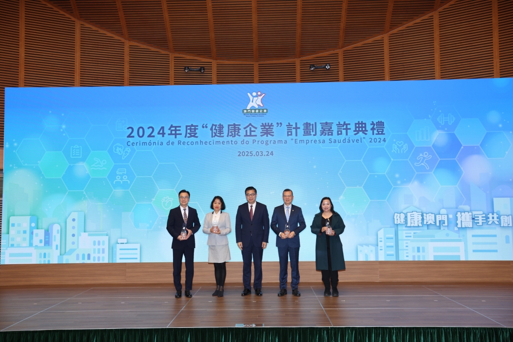 近日,由澳门特区健康城市委员会与卫生局举办2024年“健康企业”计划嘉许礼在澳门科技馆举行,澳门健康城市委员会主席、社会文化司司长柯岚,澳门中联办宣文部部长万速成,澳门特区卫生局局长罗奕龙等出席典礼并颁奖。集团荣获2024年度“澳门健康企业”嘉许。