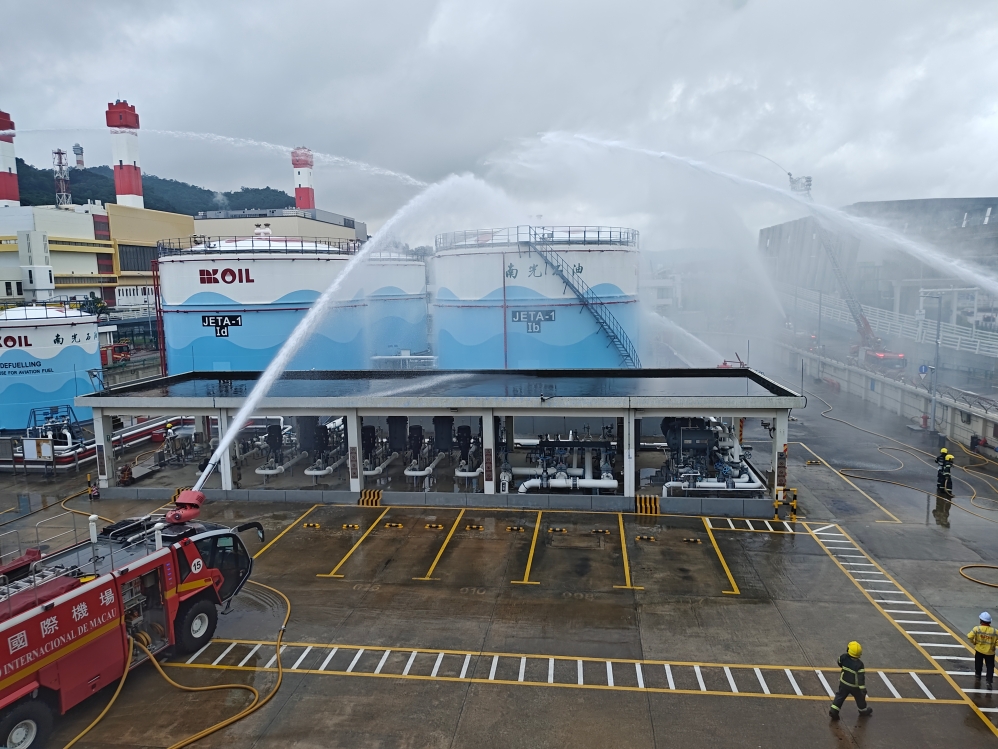 为进一步完善消防应急处置机制,增强快速响应和系统联动能力,近日,澳门国际机场举行“2025机场油库火警演习”,南光石油下属机场油库联合澳门特区政府海关、治安警察局、消防局、民航局以及澳门保安公司、澳门航空公司等单位共同参与并圆满完成演习任务。 演习模拟相关设施因静电引发火灾,机场油库根据应急预案迅速启动安全系统和警报,并立即向相关部门上报火情,同时中止生产操作,组织人员疏散。在火灾初期阶段控制火势,保护相邻设施,防止火情扩散。随后消防车辆抵达,消防员进一步开展灭火处置,顺利达成演习目标。 通过本次演习进一步检验了应急处置方案的实战效能,强化了各单位协调联动,机场油库将牢固树立“南光安全是澳门安全的重要基础和保障”理念,不断提升全体员工风险防范意识和应急处置能力,为持续做好澳门航空燃油供应保障工作贡献南光力量。 |