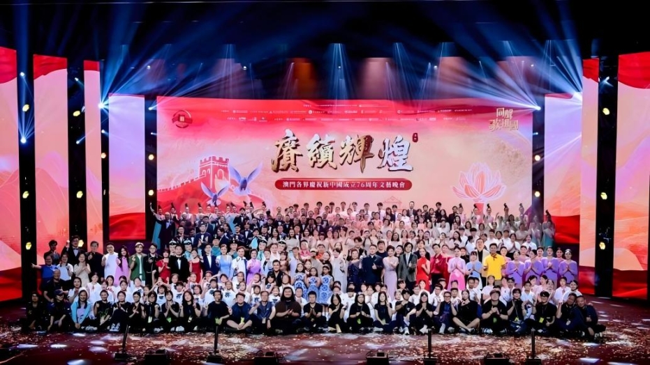 星光映辉煌,齐心创未来。由南光集团与有关企业团体共同捐助支持、澳门13家主要社团联合主办的“同声歌祖国:赓续辉煌——澳门各界庆祝新中国成立76周年文艺晚会”于9月20日晚在澳门文化中心举行。澳门特区行政长官岑浩辉,中央政府驻澳门特区联络办公室主任郑新聪,中国文联党组书记、副主席、书记处书记张政,外交部驻澳门特派员公署特派员刘显法,中国人民解放军驻澳门部队政治工作部主任高好良,澳门中国企业协会会长、集团董事长傅建国,集团董事、副总经理张沛然,以及澳门有关社团代表、企业代表、澳门青年及学生代表、社会知名人士等近千人到场观看。 晚会以澳门原创音乐剧《星辰大海·冼星海》的片段“九一八”拉开序幕。第一篇章“伟大抗战”,《共奏和平》《保卫黄河》等节目演绎中华儿女浴血奋战、铸就钢铁长城的壮丽史诗,展现中华民族众志成城、抵御外侮的磅礴力量;第二篇章“创新发展”,《七子之歌》《澳门就是这样》等节目描绘澳门回归祖国后,在中央政府和祖国内地的大力支持下,特区政府和社会各界同心协力,谱写具有澳门特色的“一国两制”成功实践的华彩篇章。尾声部分在节目《灯火里的中国》中结束。伴着《歌唱祖国》的旋律,晚会圆满落幕。 晚会动员澳门33个社团、团体和学校的260余名演员同台演出,展现了澳门社会各界的家国情怀。南光集团文体协会多位青年员工参与《保卫黄河》120人大合唱,在璀璨舞台上能与澳门社会各界团体一起同声歌祖国,以激昂深情的表演,为祖国、为澳门献上了最真挚的祝福。 |