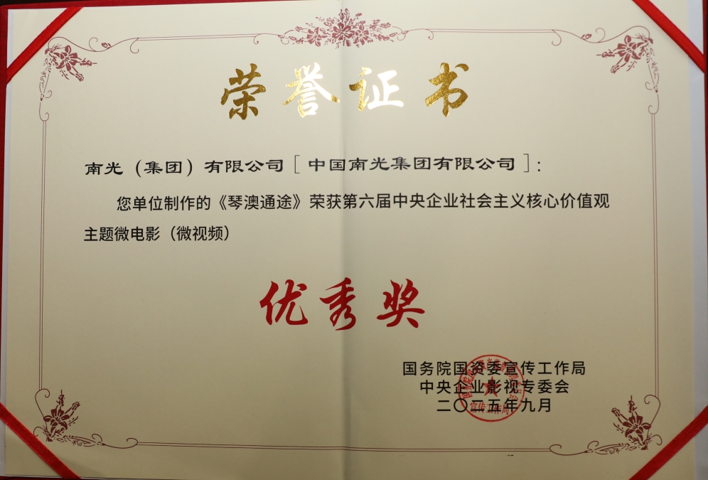 9月19日,在全国人民隆重纪念中国人民抗日战争暨世界反法西斯战争胜利80周年、喜迎新中国76周年华诞之际,由国务院国资委主办的第六届中央企业社会主义核心价值观主题微电影(微视频)展映发布活动在京举行。活动现场发布了初心使命、爱党报国、大国重器、敬业奉献、社会责任等5个主题100部优秀作品,同时揭晓中央企业基层理论宣讲100部优秀微视频。集团选送的南光置业作品《琴澳通途》荣获第六届中央企业社会主义核心价值观主题微电影(微视频)“优秀奖”,南光物流作品《助力澳门经济适度多元发展做开创琴澳融合新局面的建设者》荣获中央企业基层理论宣讲微视频“优秀奖”。 活动紧紧围绕全面贯彻落实习近平新时代中国特色社会主义思想,深入学习贯彻习近平文化思想,通过生动鲜活的视听艺术形式,诠释社会主义核心价值观,依托“小场景”“小故事”展现中央企业坚守初心、履职担责的时代风采,讲述广大干部职工爱党报国、敬业奉献的动人故事,传递了国资央企崇德向善、明德惟馨的价值追求。集团此次获奖作品均取材于员工身边的真实经历,以平实视角展现了南光人爱国爱澳、爱岗敬业、默默奉献的精神风貌,展现了南光“用最好的回报社会”的企业宗旨,实现了以“小切口”展现“大主题”的宣传效果。 《琴澳通途》以一位澳门籍青年员工的视角,讲述其毕业后加入南光集团代建的澳门轻轨延伸横琴线项目团队,与同事携手攻坚、共同成长的动人故事。作品通过鲜活细腻的“小切口”,生动展现了南光置业积极推动粤澳青年交流、助力青年专业人才成长的责任担当,也折射出集团在促进琴澳互联互通、支持澳门经济多元发展、服务国家大局中所发挥的驻澳央企重要作用。 《助力澳门经济适度多元发展做开创琴澳融合新局面的建设者》理论宣讲视频,紧密围绕贯彻落实二十届三中全会精神,聚焦南光(横琴)物流中心建设,以企业改革创新、产业布局优化、数字化转型等重点任务落实,展现了南光物流持续推动琴澳协同的生动实践,切实将全会精神转化为助力澳门融入国家发展大局的具体举措,用实际行动助力澳门特色“一国两制”成功实践行稳致远。 |